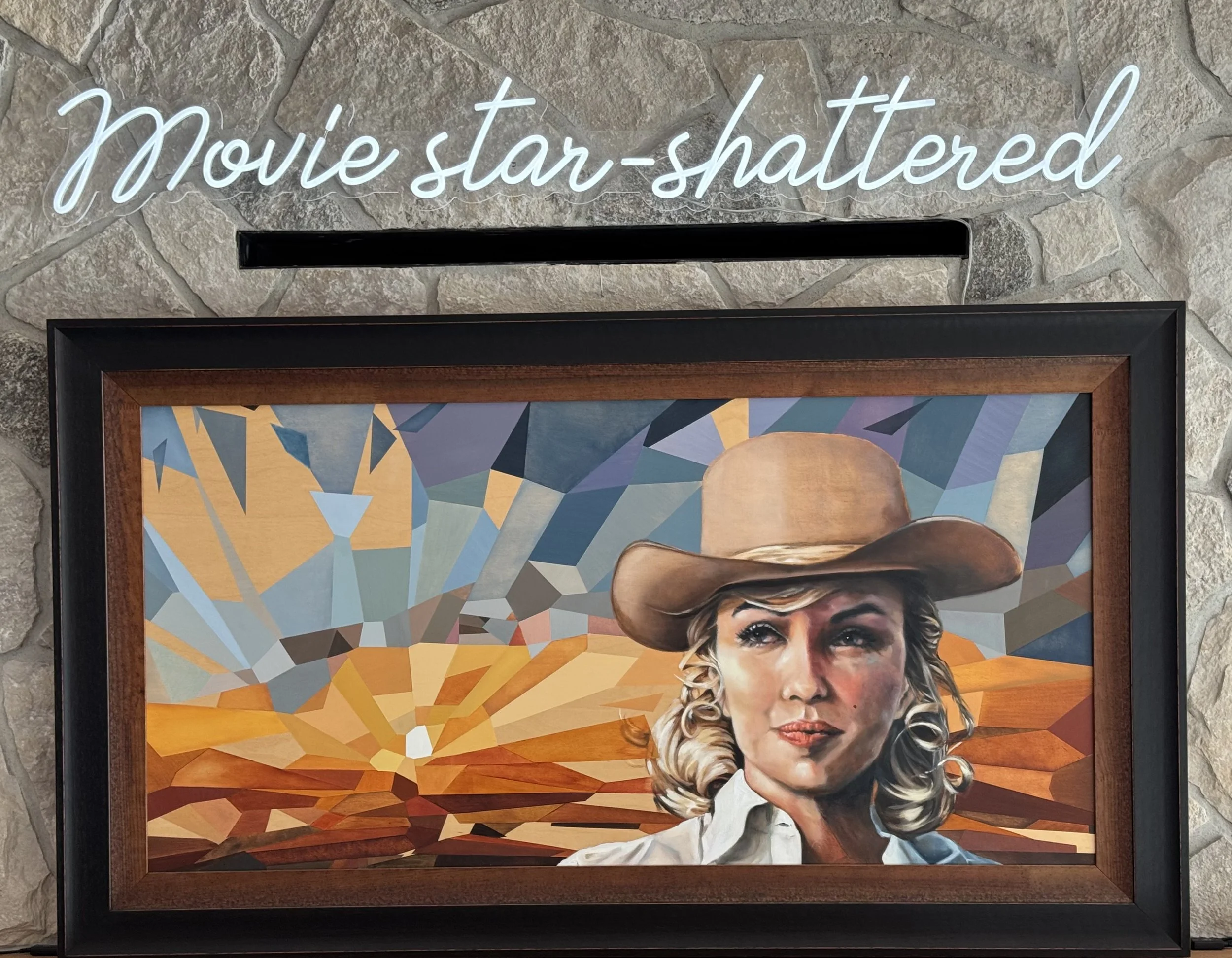 Her marriage to Arthur Miller (who wrote the Misfits) was declining, her barbiturate addiction accelerating, yet her luminescent beauty transcended her declining mental state. This painting hopes to capture a brave yet deeply misunderstood woman and like the shattered sunset she is sinking before our eyes.